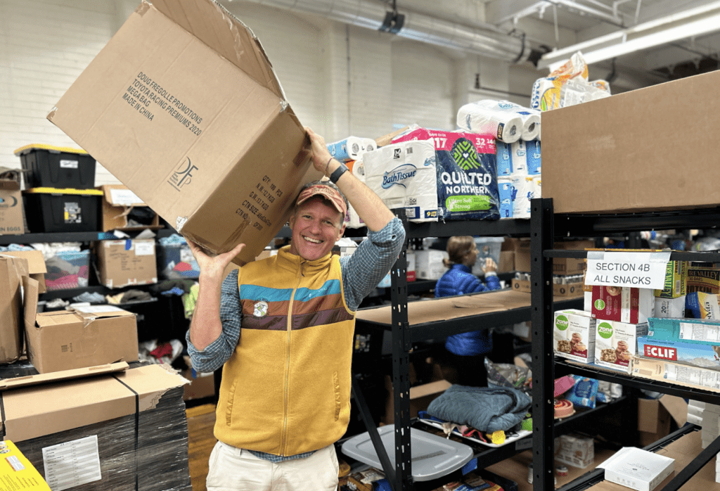 Sam and Lance proceeded to reach out to more friends and family and recruit more members of WNC’s paddling community to help them deliver critical supplies and help folks in need of assistance as the French Broad and its surrounding tributaries rose at an alarming rate. By Saturday morning, Sam, Lance, and their impromptu response team needed a command center and facility to receive relief items as news of their effort spread throughout the southeast. We all immediately realized that the Maria Noakes Outdoor Center at our South Campus was a perfect fit and the HRC team quickly converted the outdoor gear storage space into HRC headquarters. FBRA staff, students, parents, and community members volunteered to support the operation and fulfilled countless missions and delivered critical supplies to affected communities in the surrounding area. It was truly one of the most inspiring and proudest moments in FBRA’s sixteen year history, and our partnership with HRC continues today.